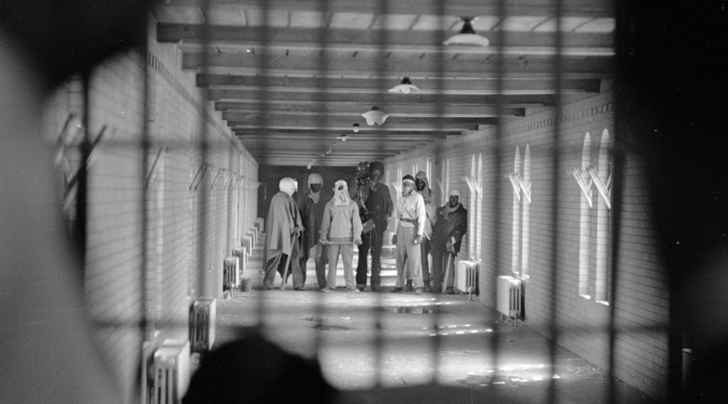 Detentos que participavam das negociações na rebelião de Attica. Imagem por AP Photo/Bob Schultz
